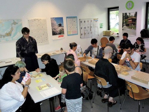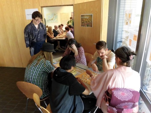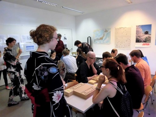 Shogi-Dojos verwendet. Zeitweise war es beim Workshop so voll, dass wir sogar noch einen Extra-Tisch im Foyer dazustellen