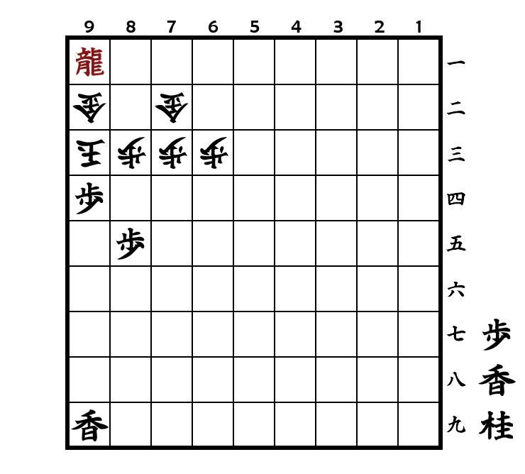 Nach △9二玉 ist normalerweise kein Matt möglich, wenn man über keinen Gold auf der Hand verfügt. Aufgrund des vorgerückten Randbauern jedoch gelingt hier die Mattführung mittels ▲7二飛成 und ▲9三銀. Achtsamkeit ist jedoch bis zum Schluss erforderlich, denn wenn Gote statt ▲9一飛成 zunächst ▲9四歩 zieht, dann folgt △8二玉 und es ist kein Matt mehr möglich.