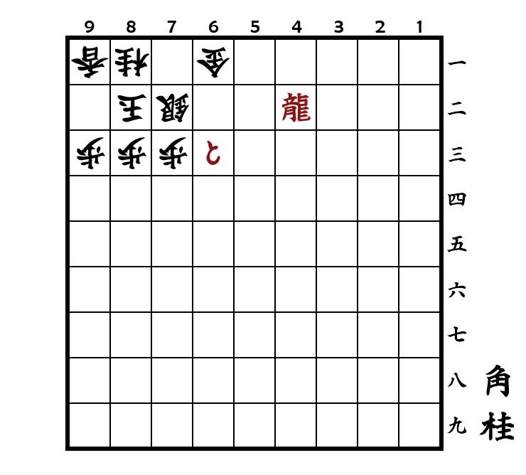 ▲7一角 △9二玉 ▲7二飛成 △同金 ▲9三銀 △同桂 ▲同角成 △同玉 ▲9一飛成