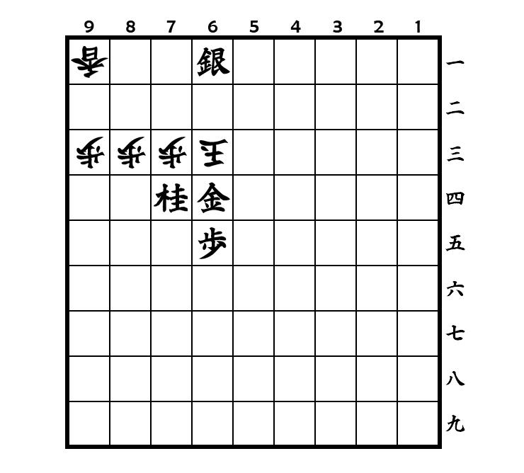 △8一玉 (oder 8二玉 ) und es wird nicht matt. Bei diesem Problem wird die Schwäche genutzt, dass kein Springer auf 8一 vorhanden ist, und mit ▲7四桂 die gegnerische Festung aufgebrochen. Nach ▲7三角 führen dann mehrere Wege zum Matt.