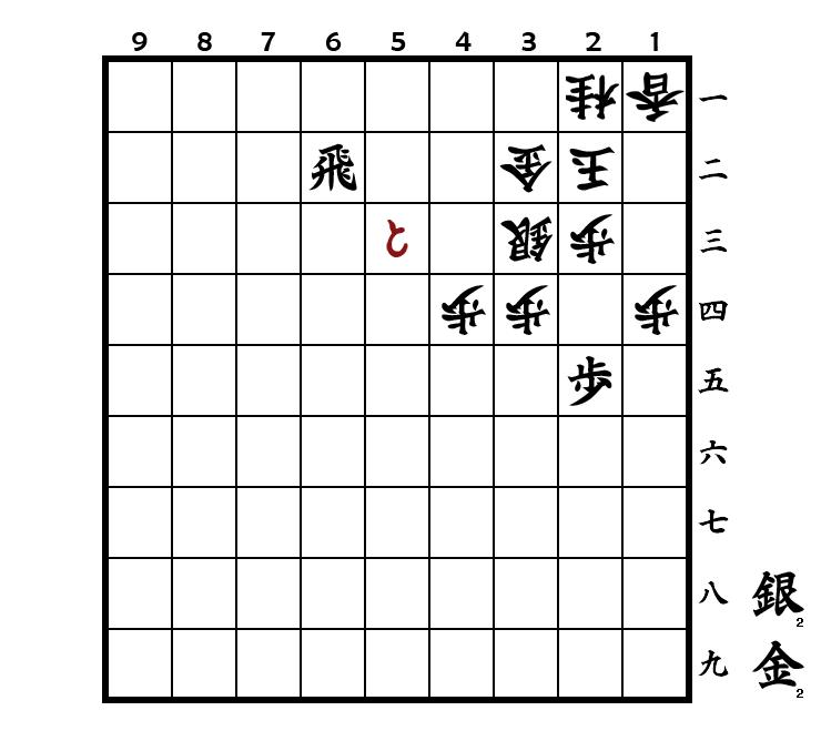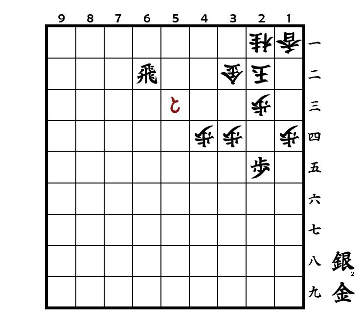 Falls auf den ersten Zug ▲3一銀 △1二玉 geschieht, erweist sich der Besitz des Läufers auf der Hand als entscheident, und es wird matt nach ▲3二竜 △2二香 ▲2一竜 △同玉 ▲3二金 △同玉 ▲4三角 usw. Ohne einen Läufer auf der Hand funktioniert diese Variante nicht. Wenn schließlich nach ▲3二竜 ein Gold 2二 auf dazischengezogen wird, folgt ▲同銀成 △同銀 ▲同竜 △同玉 ▲3一銀 usw.