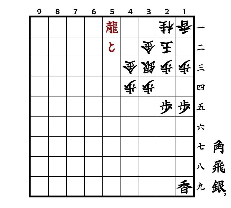 Nach ▲2三香 ist es korrekt mit ▲2一飛成 den Turm auf der Grundreihe zu opfern. Wenn statt dessen mit ▲2三同飛成 der Turm von 2八 einschlägt, ist nach △同玉 ▲2一飛成 △2二歩 kein Matt mehr möglich.