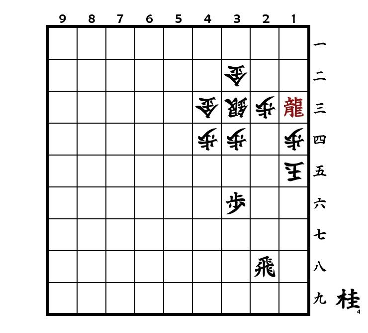 ▲2三飛成 △2二飛 ▲3二金 △1一玉 ▲2二金 △同銀 ▲1二飛 △2一玉 ▲2二飛成 matt