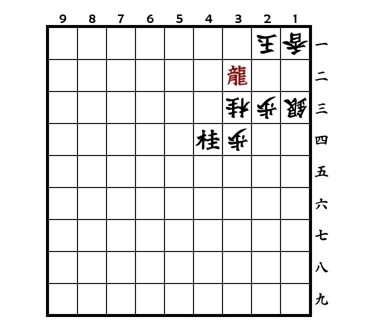 ▲3二馬 △同玉 ▲4四桂 △2二玉 ▲3三金 △同桂 ▲5二飛成 △2一玉 ▲3二竜 matt
