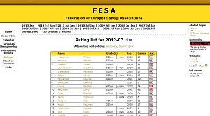 der FESA ist die Ausrichtung der Europameisterschaft und die Verwaltung der Elo-Punkte der einzelnen Spieler. Hier finden