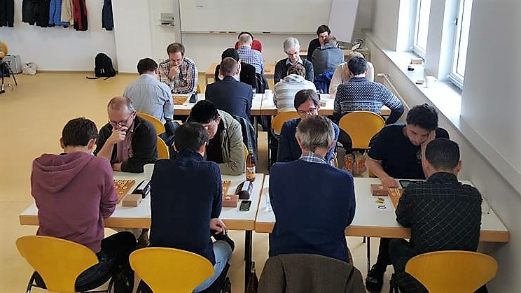 ansässigen Shogi-Club trafen sich 43 Spieler aus allen Himmelsrichtungen im Gebäude des K.i.Z. im Gallus e.V. zum Frankfurter