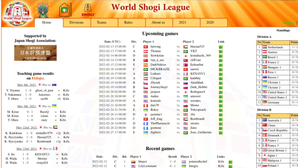 Deutschland ist in diesem Jahr wieder in der World Shogi League (WSL) am Start. Dabei handelt es sich um ein Online-Turnier für
